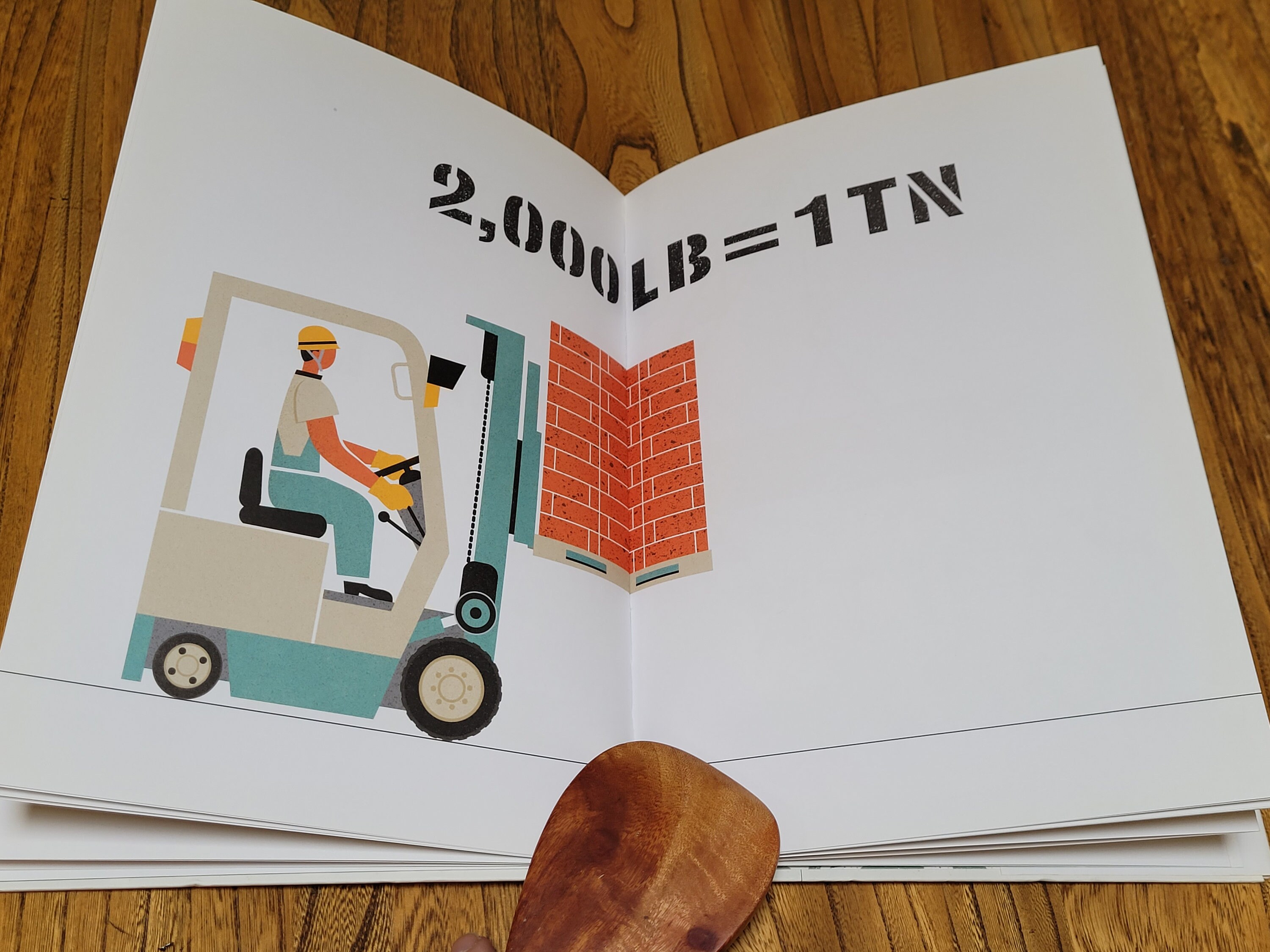 "A man lifts a 50-pound girder. A forklift moves a 1-ton load. A wheelbarrow, a crane, a truck, a train all transport increasingly heavy objects as Taro Miura's deceptively simple book unfolds. Children will delight in the arresting images of workmen and their equipment. And as the weight increases so will their understanding of how we measure it. A dramatic gatefold spread and a brief explanation of different measurement systems complete the picture as this unique book makes learning about weight absolutely effortless."