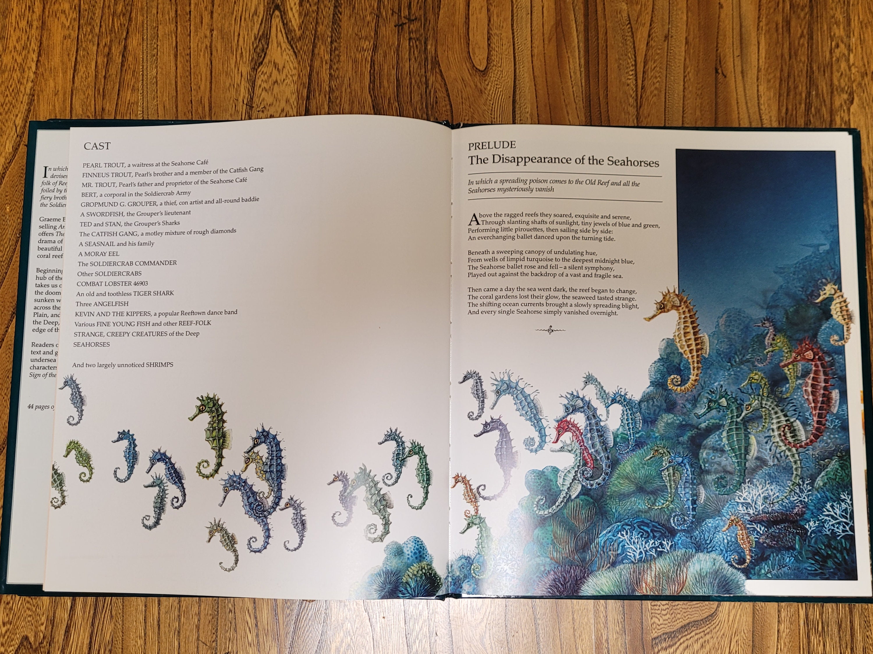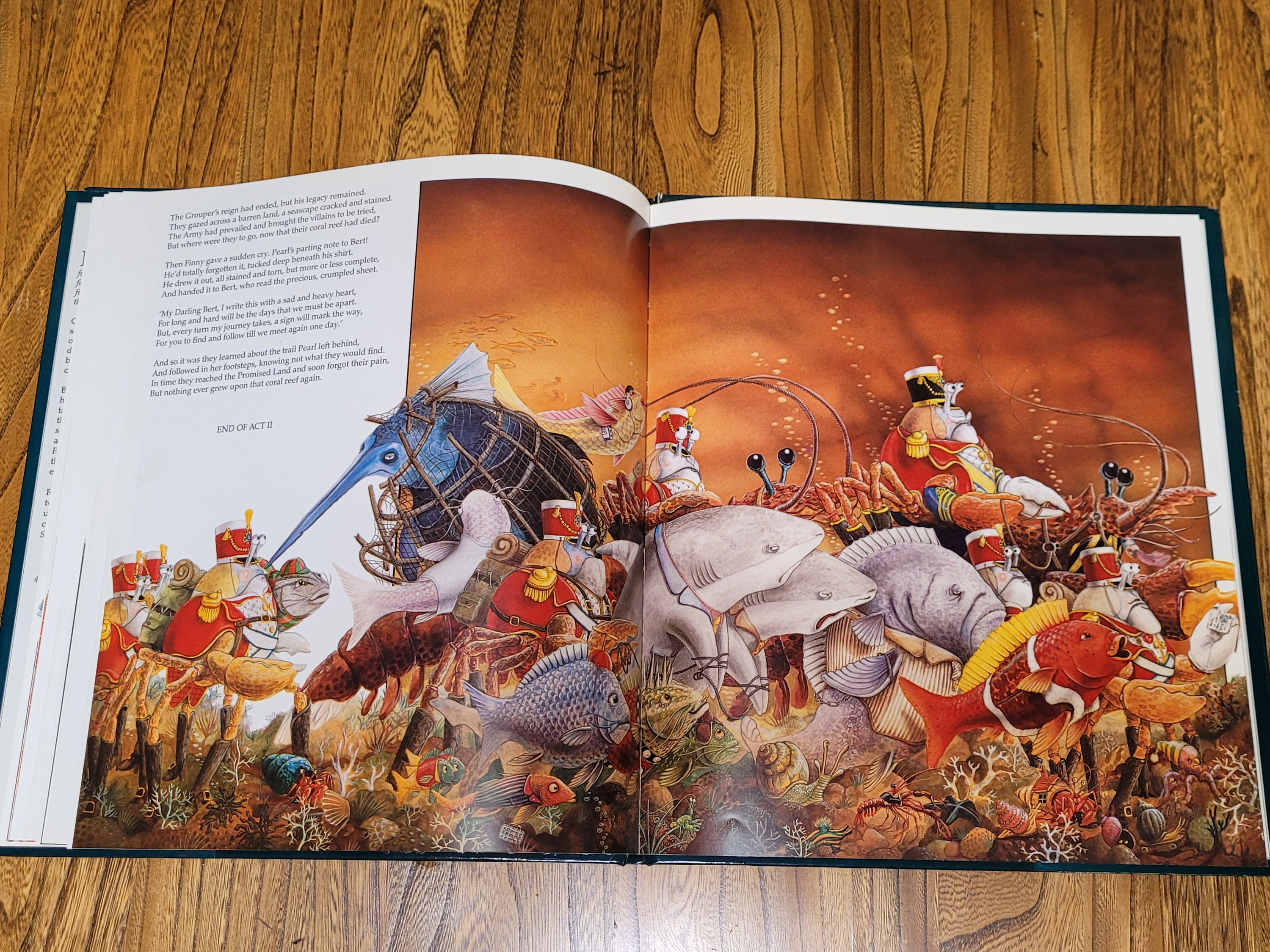 The book is divided into two acts and features colorful and detailed illustrations of various sea creatures and their habitats. Praised for its witty rhymes, engaging plot, and artistry, the book also has an ecological message about the importance of protecting the environment from pollution and exploitation.