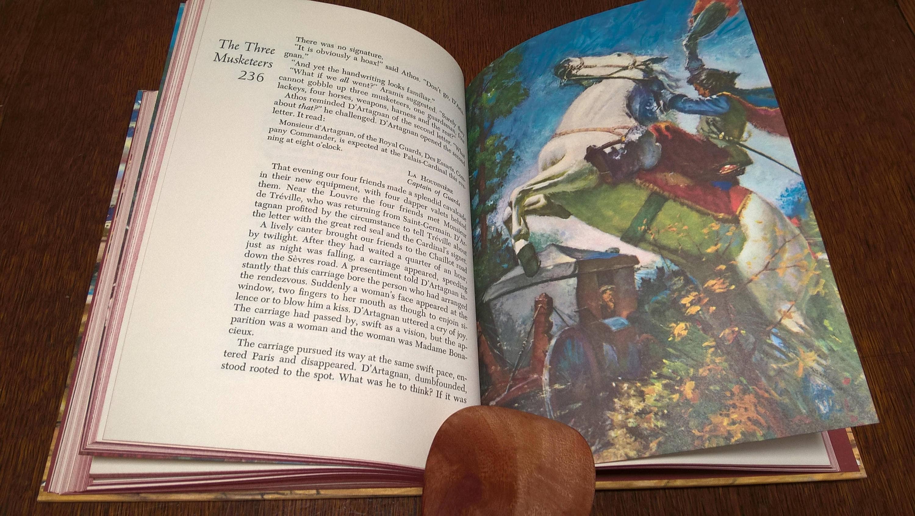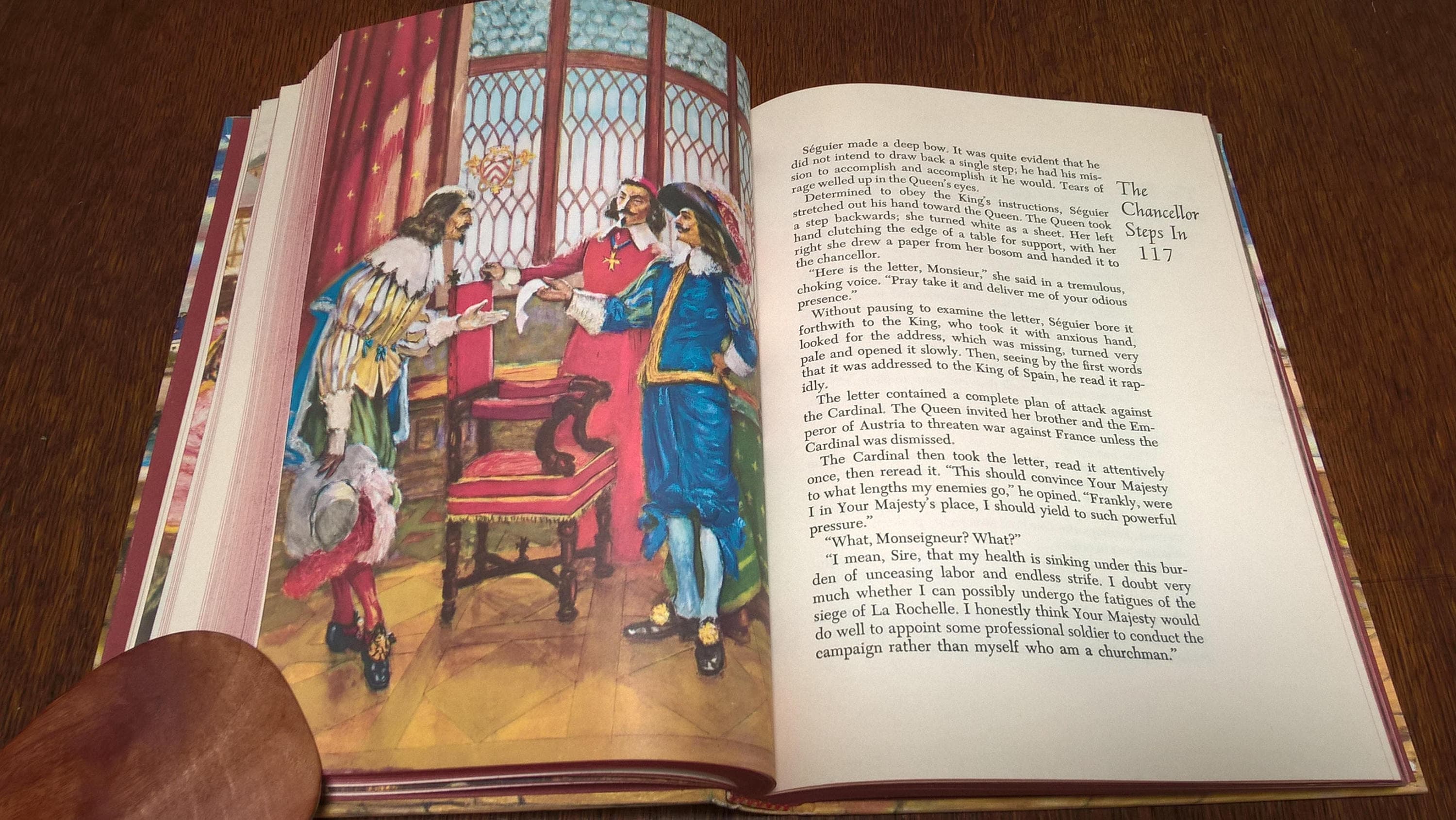 This edition of The Three Musketeers is beautifully illustrated throughout. Norman Price, the original illustrator, died before his work for the book was finished, and the publishers contracted with E. C. Van Swearingen to complete it.