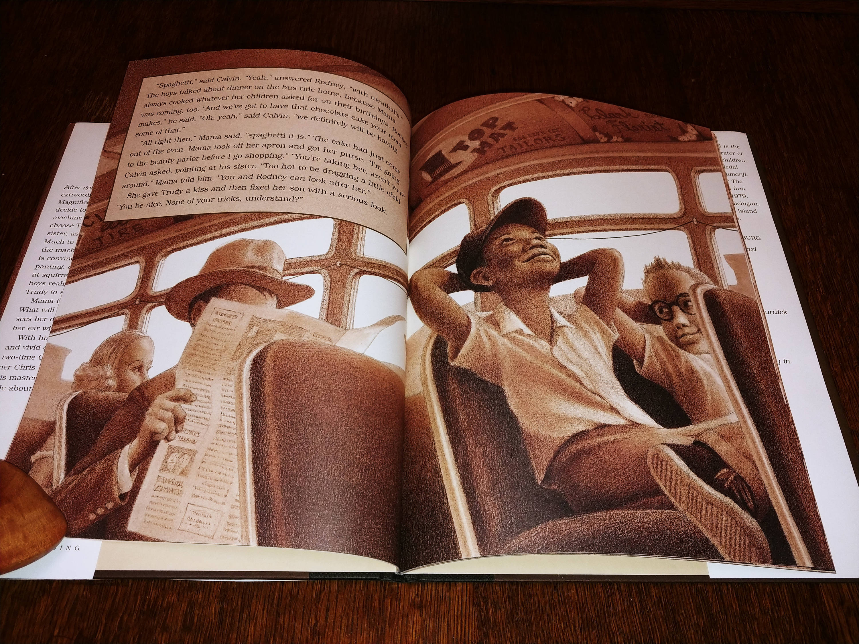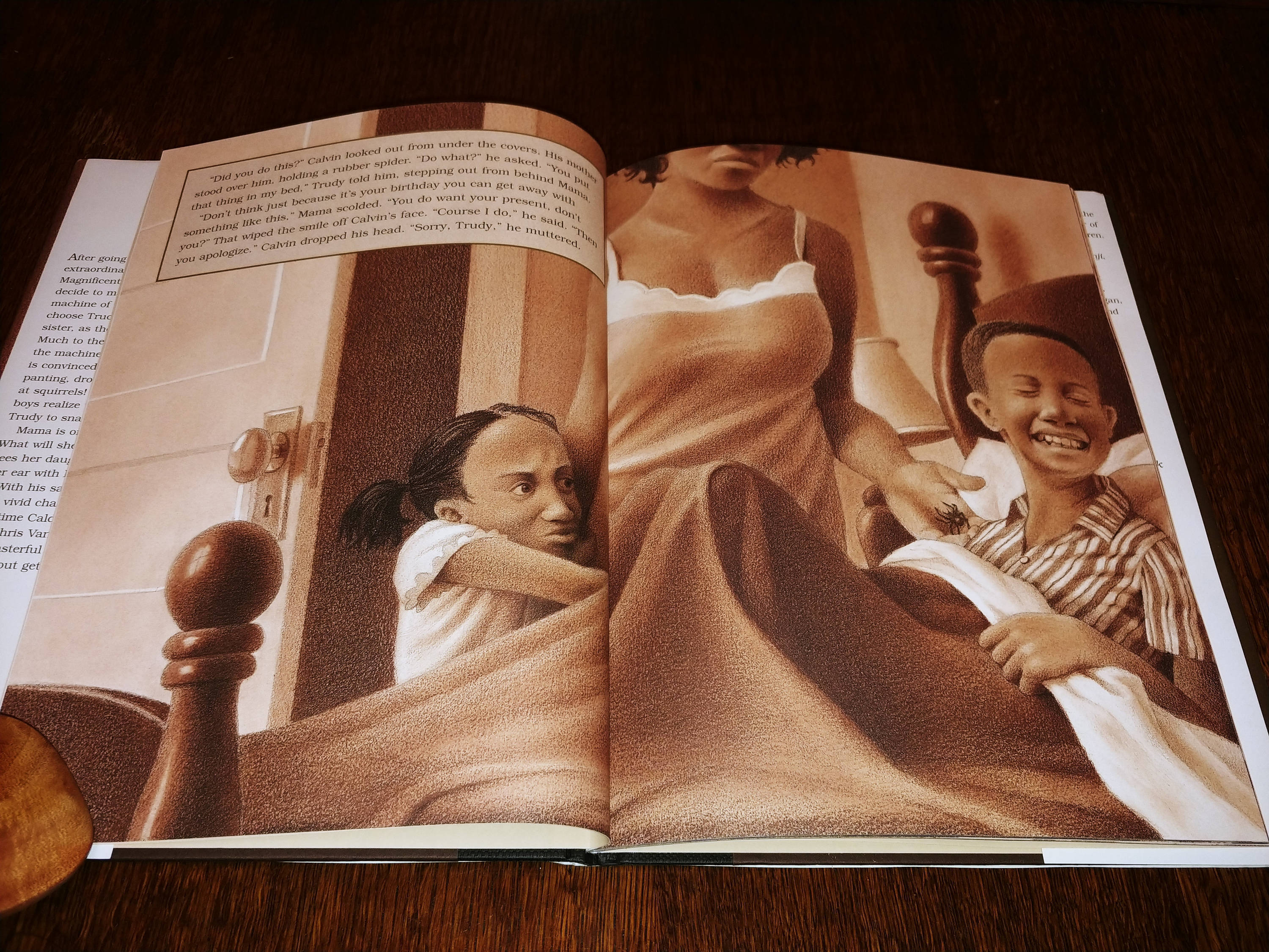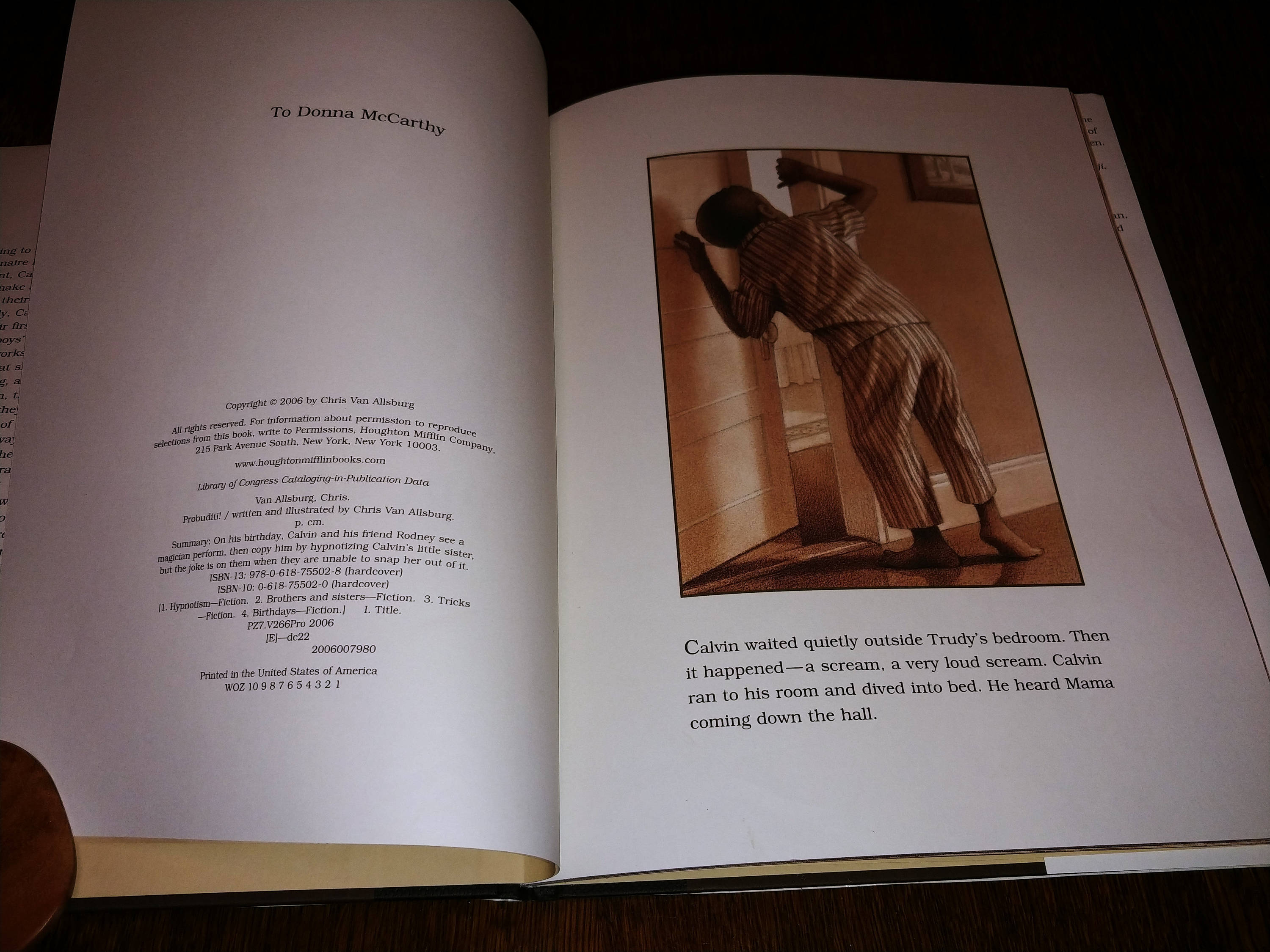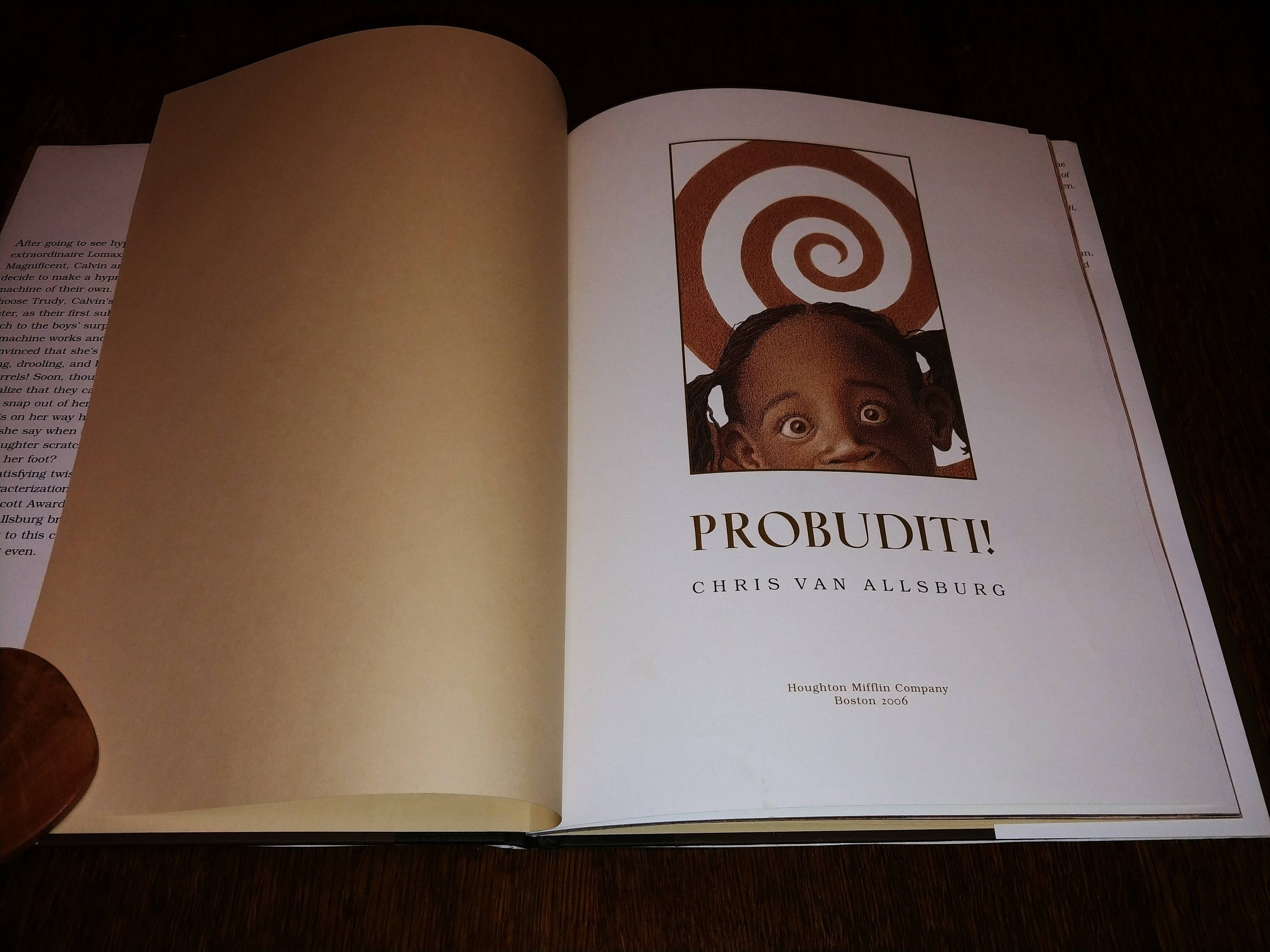 Chris Van Allsburg's glowing sepia-toned illustrations pull us into the story, to plot and giggle with the boys as they trick Trudy with a practical joke, and to cheer her on to shout "Probuditi!" to break the spell.