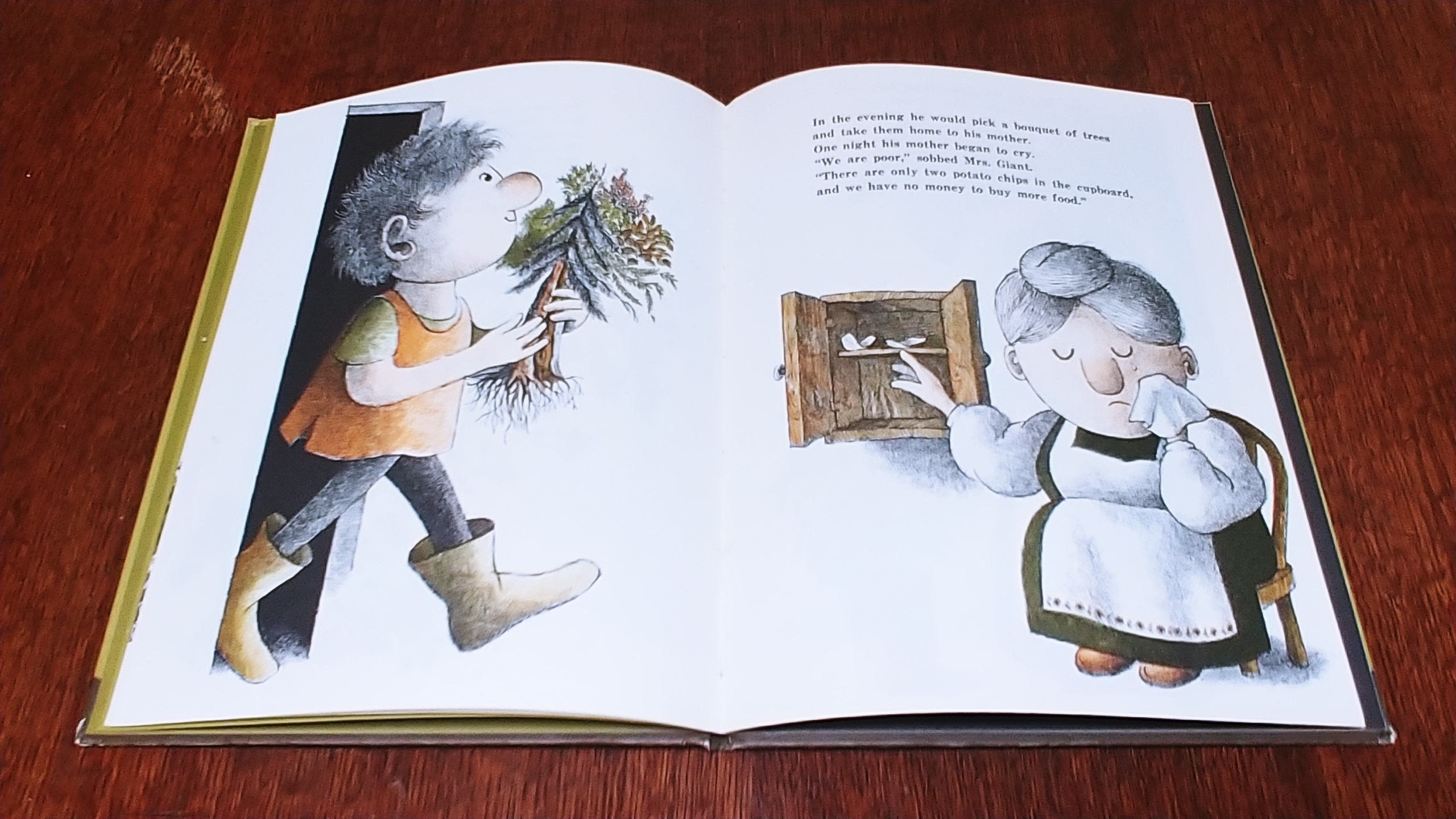 Arnold Lobel's Giant John leaves leaves home to find a job to save himself and his mother from poverty.
