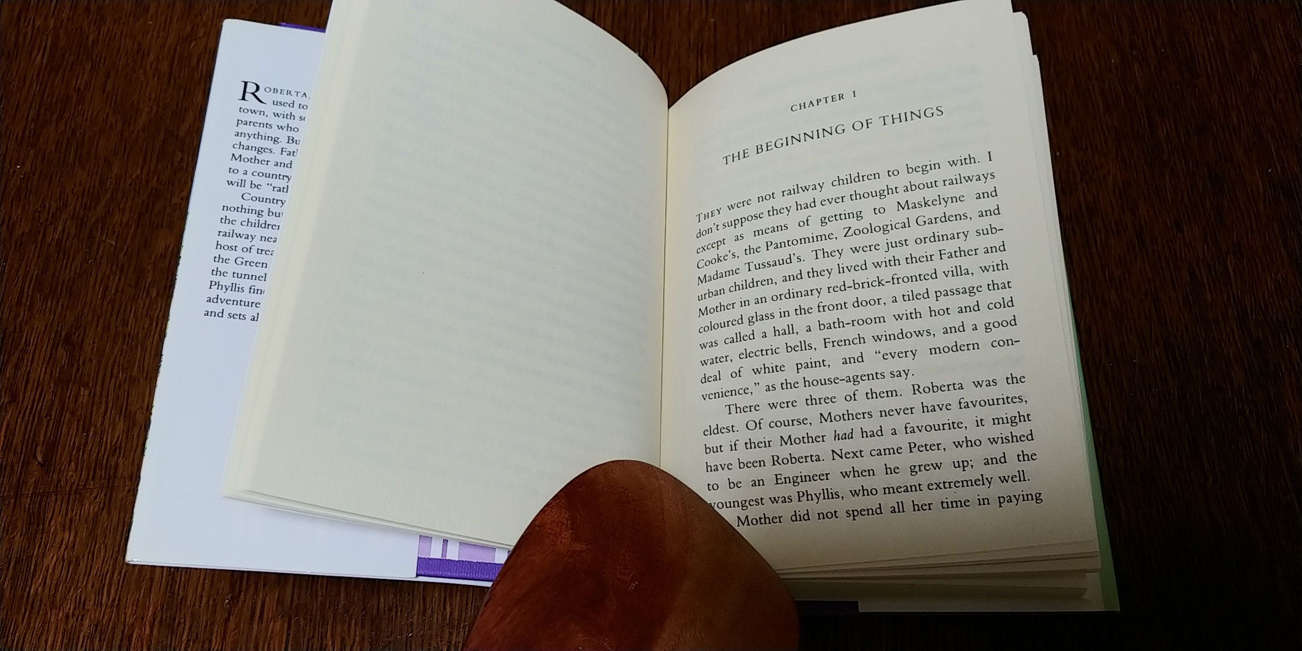 "They were not railway children to begin with. I don't suppose they had ever thought about railways except as means of getting to Maskelyne and Cooke's, the Pantomime, Zoological Gardens, and Madame Tussaud's. They were just ordinary suburban children, and they lived with their Father and Mother in an ordinary red-brick-fronted villa, with coloured glass in the front door, a tiled passage that was called a hall, a bath-room with hot and cold water, electric bells, French windows, and a good deal of white paint, and "every modern convenience", as the house-agents say.