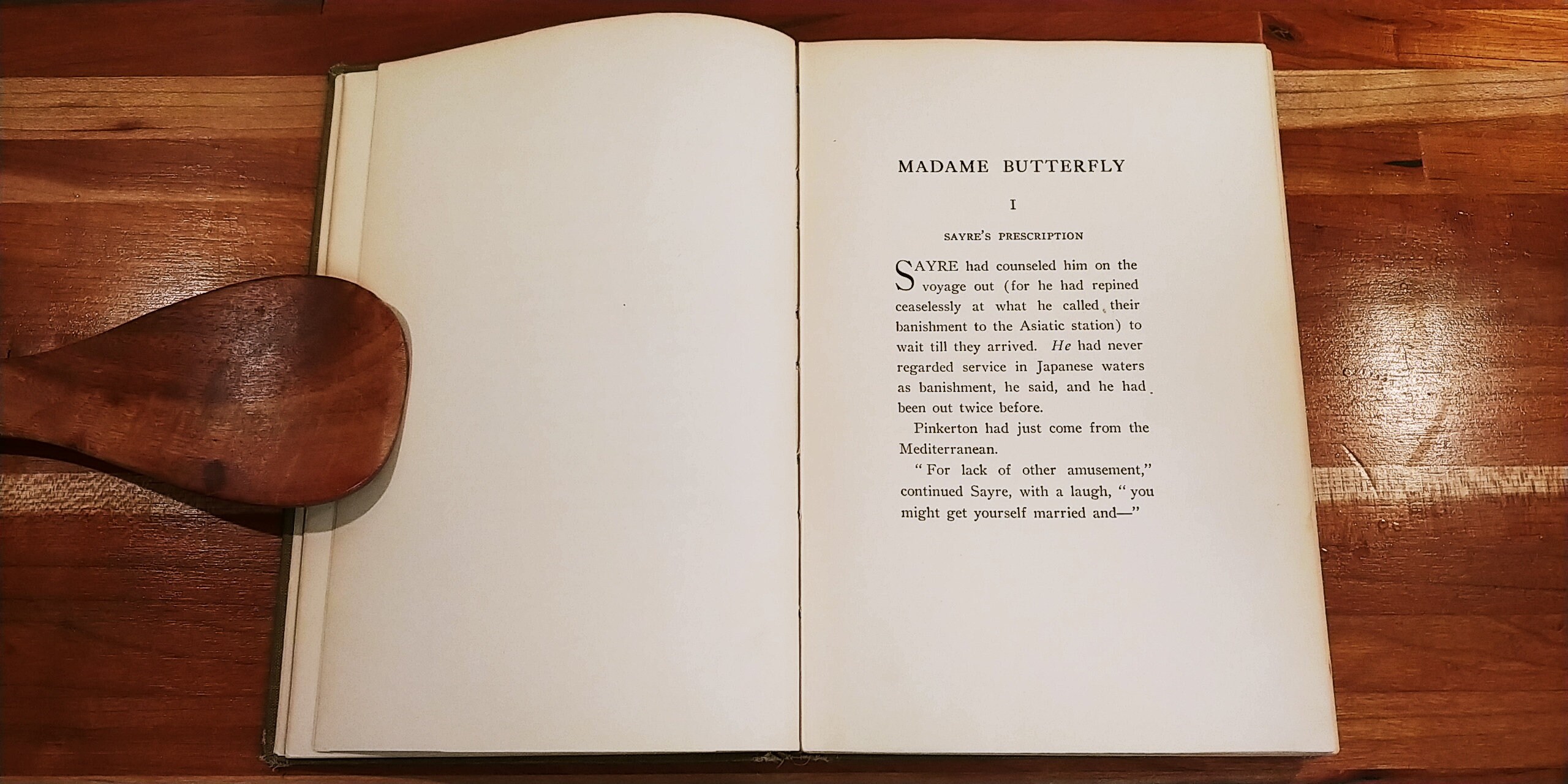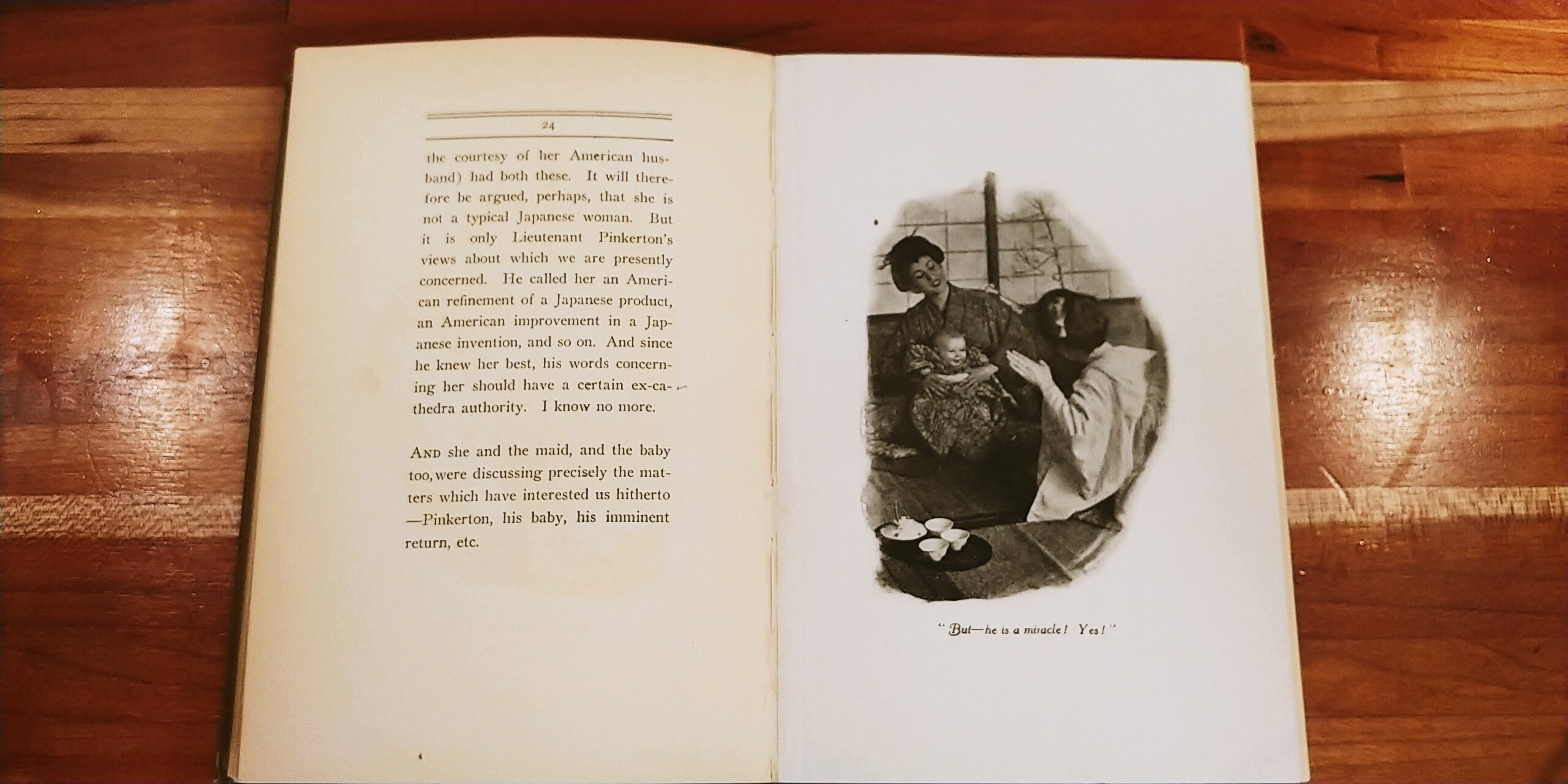 "At first she decided to run away from him. But this, she reflected, would not probably please her relatives, since they had unanimously agreed upon the marriage for her. Besides, she preferred to remain. She had acquired a strange liking for Pinkerton and her new way of life. Finally she undertook a weak remonstrance - a very strong one, in fact, for a Japanese wife; but Pinkerton encouraged her pretty domestic autonomy. Her airs of authority were charming. And they grew more and more so."